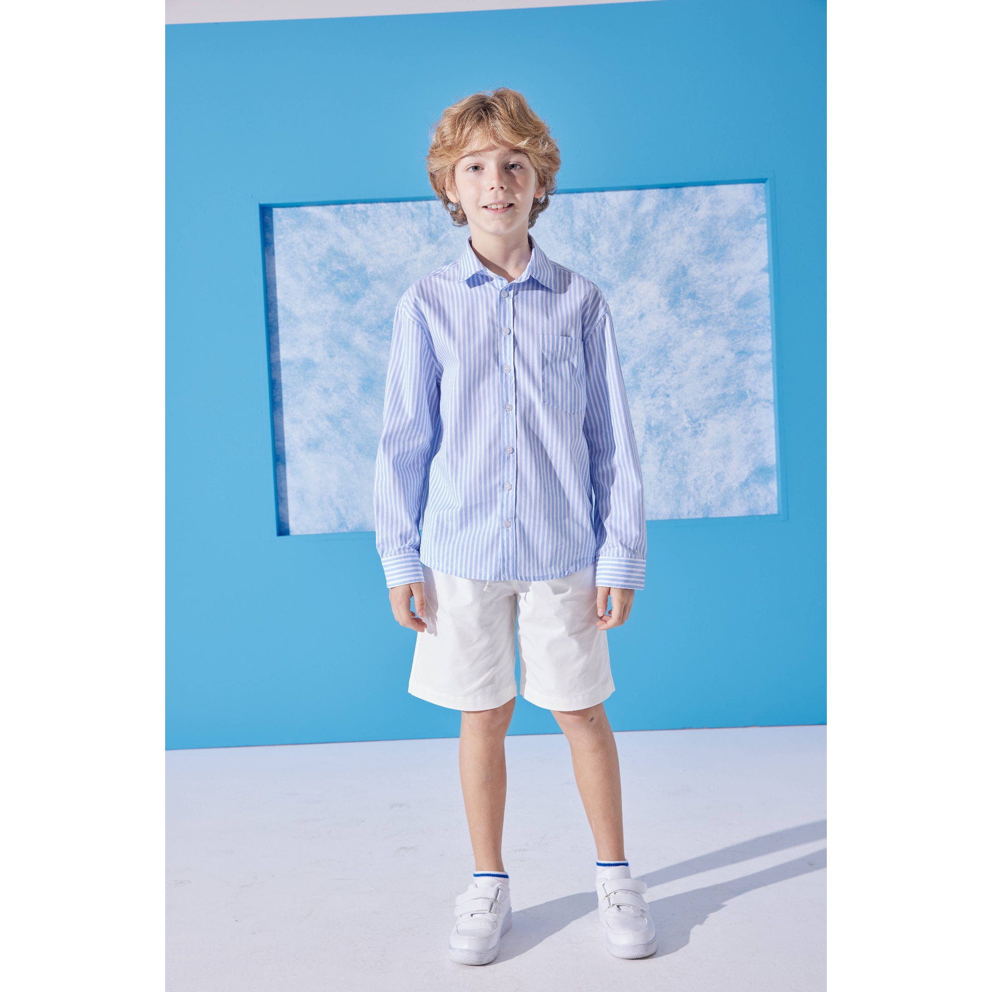 Effortlessly polished with a touch of coastal charm, the Azur Boys Cotton Shirt is a timeless wardrobe staple for stylish young boys. Featuring classic blue-and-white stripes, this lightweight shirt is made from 100% breathable cotton—perfect for warm days and special moments alike. Its button-up front and relaxed fit make it easy to dress up with trousers or down with rolled-up sleeves and shorts. Whether it’s for family gatherings, summer holidays, or everyday adventures, the Azur Shirt brings easy elegance to any occasion.